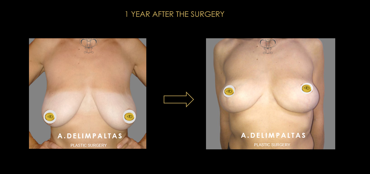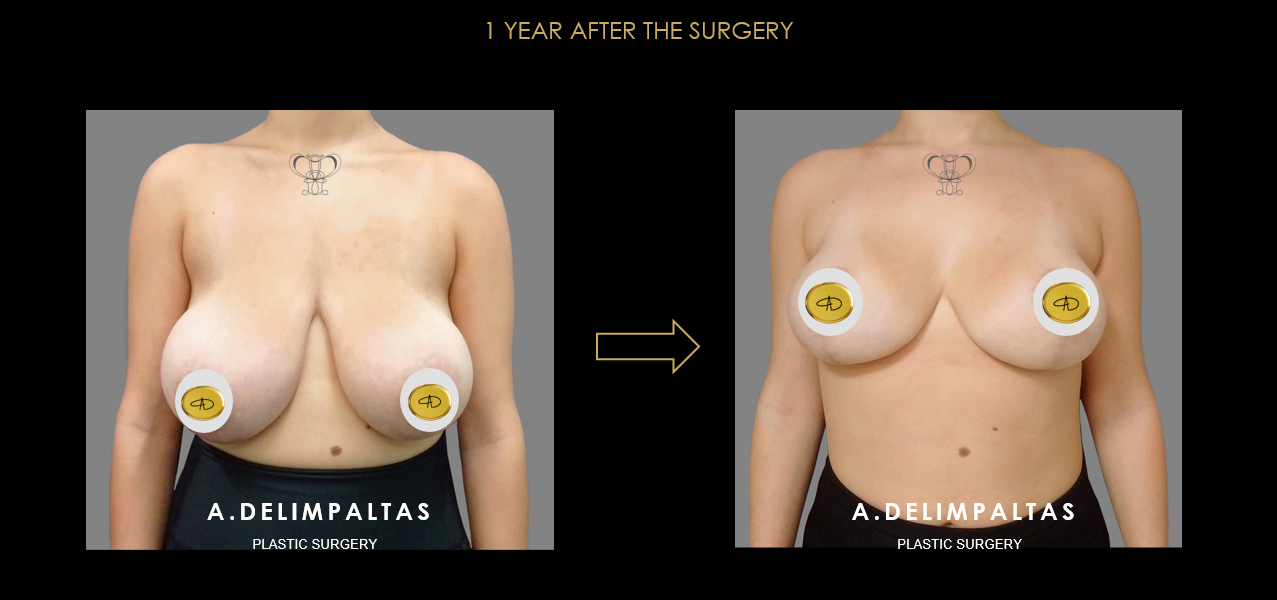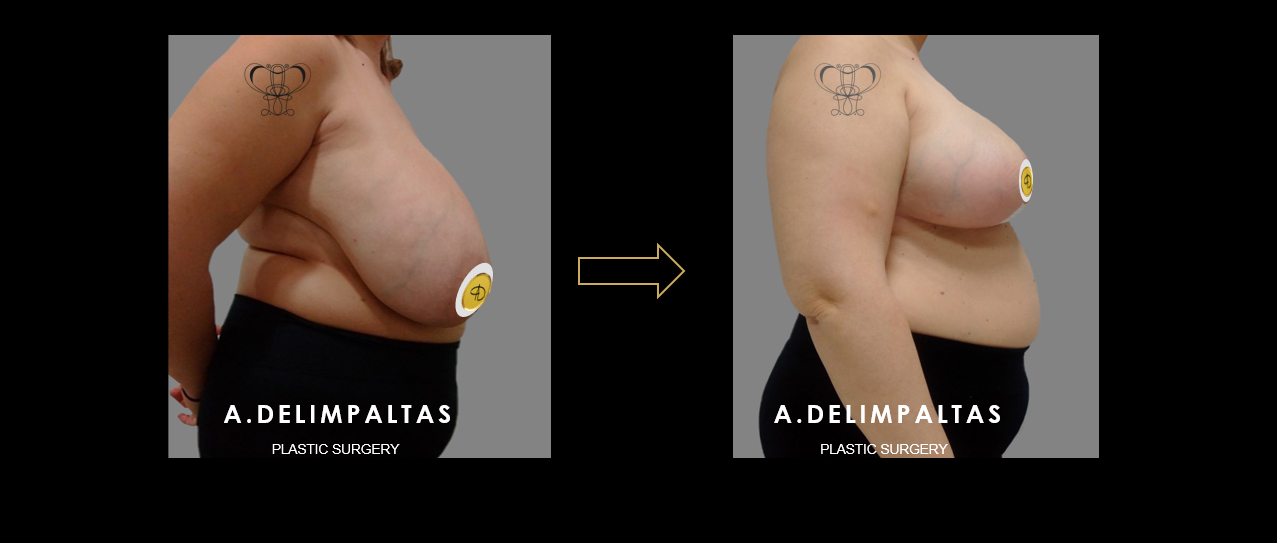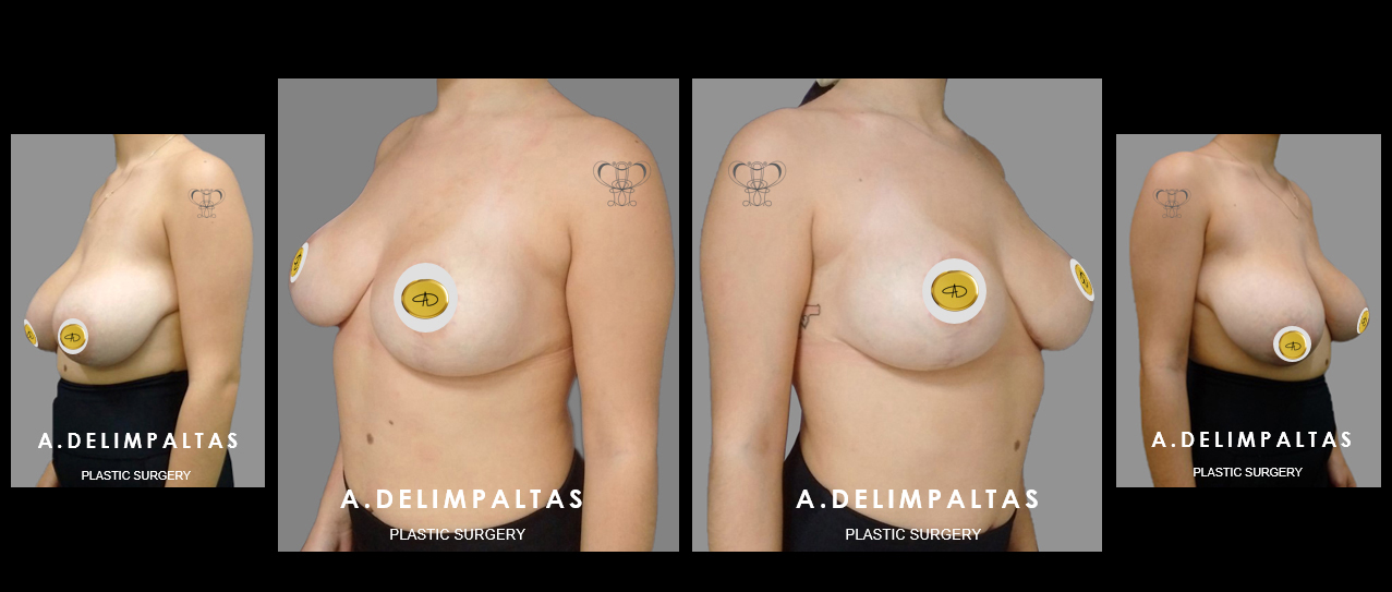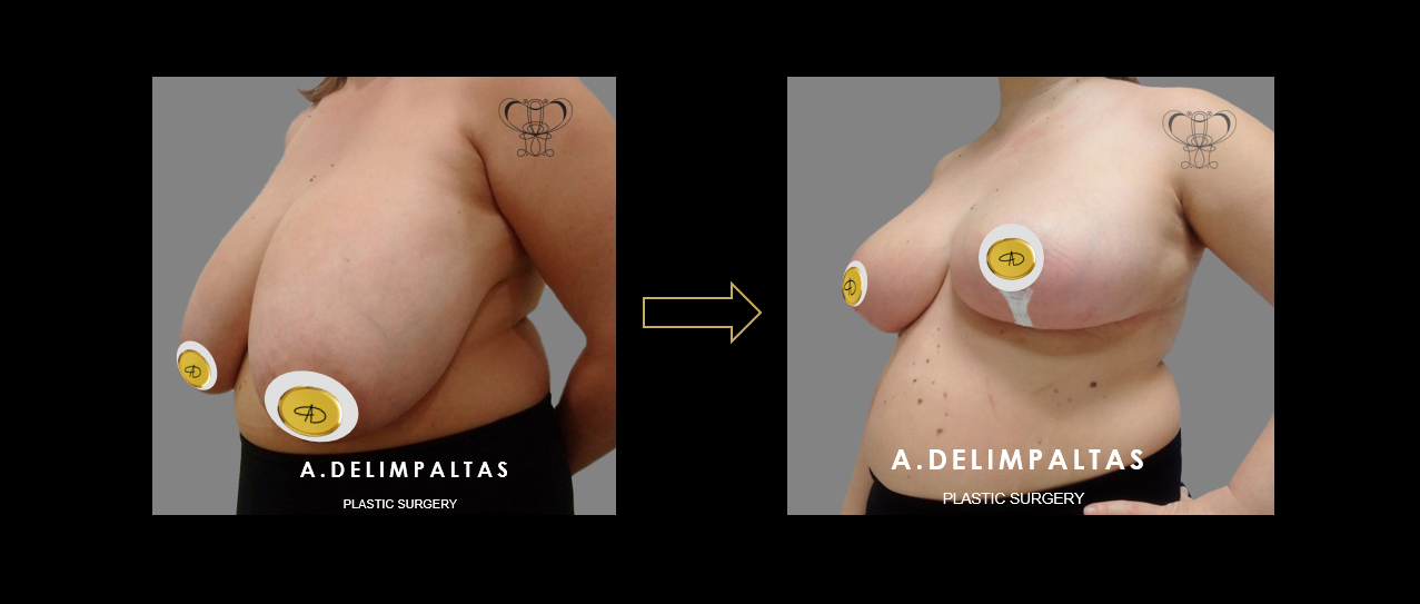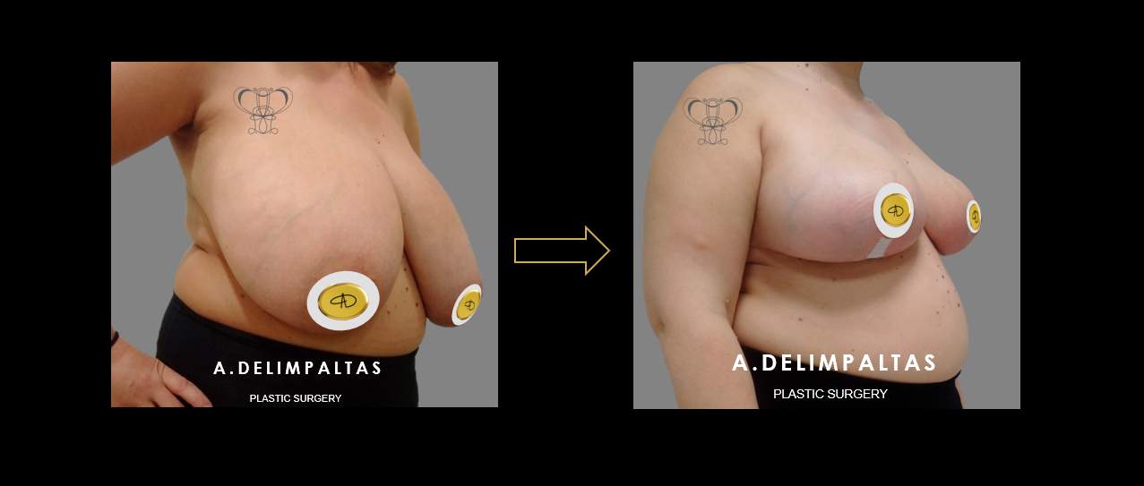 Young woman <40 years old after IVF twin pregnancy. Εxtremely large breasts (gigantomastia), asymmetry, very large drop of breasts