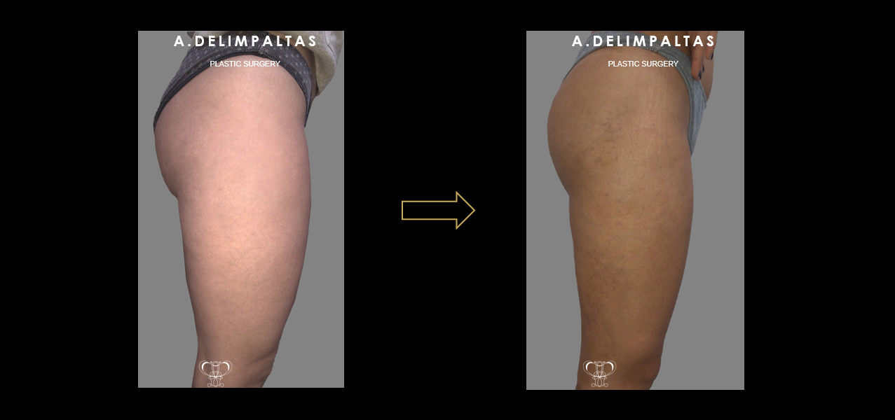 Advanced brazilian body remodeling technique with liposuction-liposculpture on thighs, knees, buttocks (gentle lifting) and breast augmentation with fat transfer