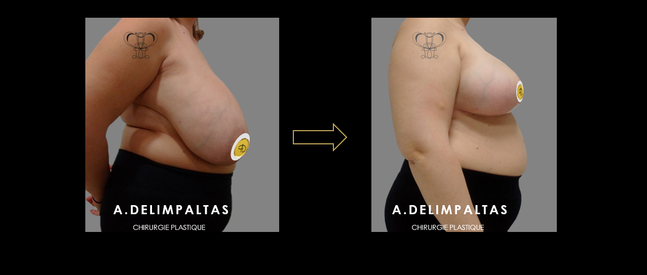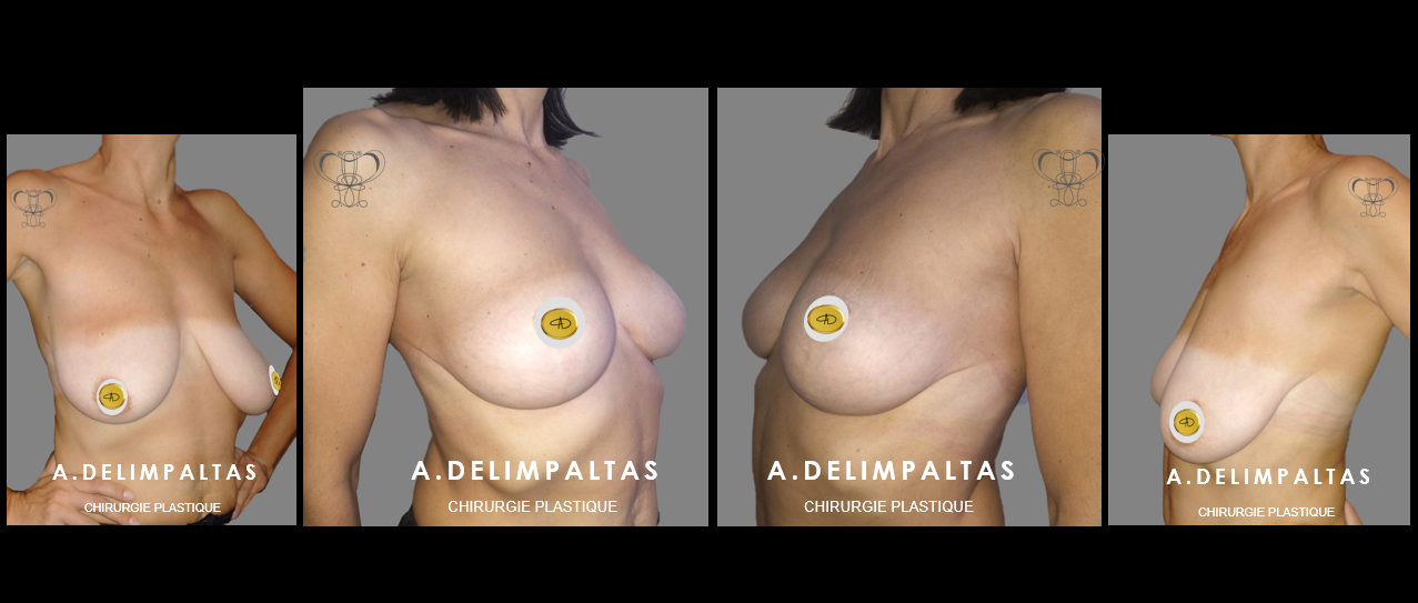 Jeune femme <45 ans après 4 grossesses avec atrophie, asymétrie et chute sévère des seins