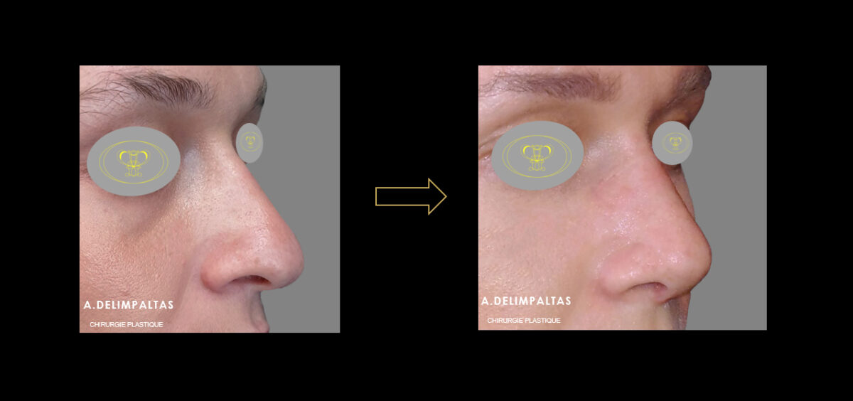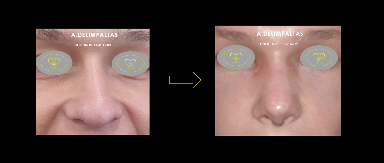 Jeune femme <30 ans avec pointe du nez tombante, léger décalage médian et léger courbure de la partie dorsale du nez