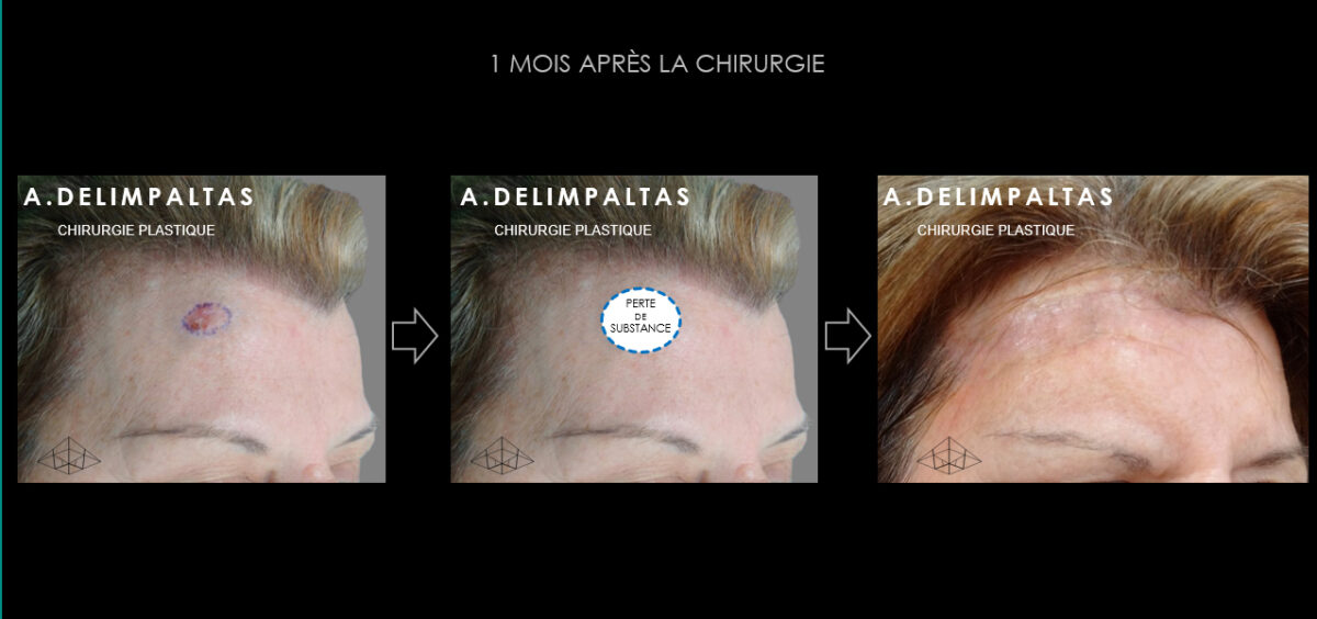 Traitement chirurgical d’une fame atteint d’un cancer de la peau de type CBC sur le côté droit du front