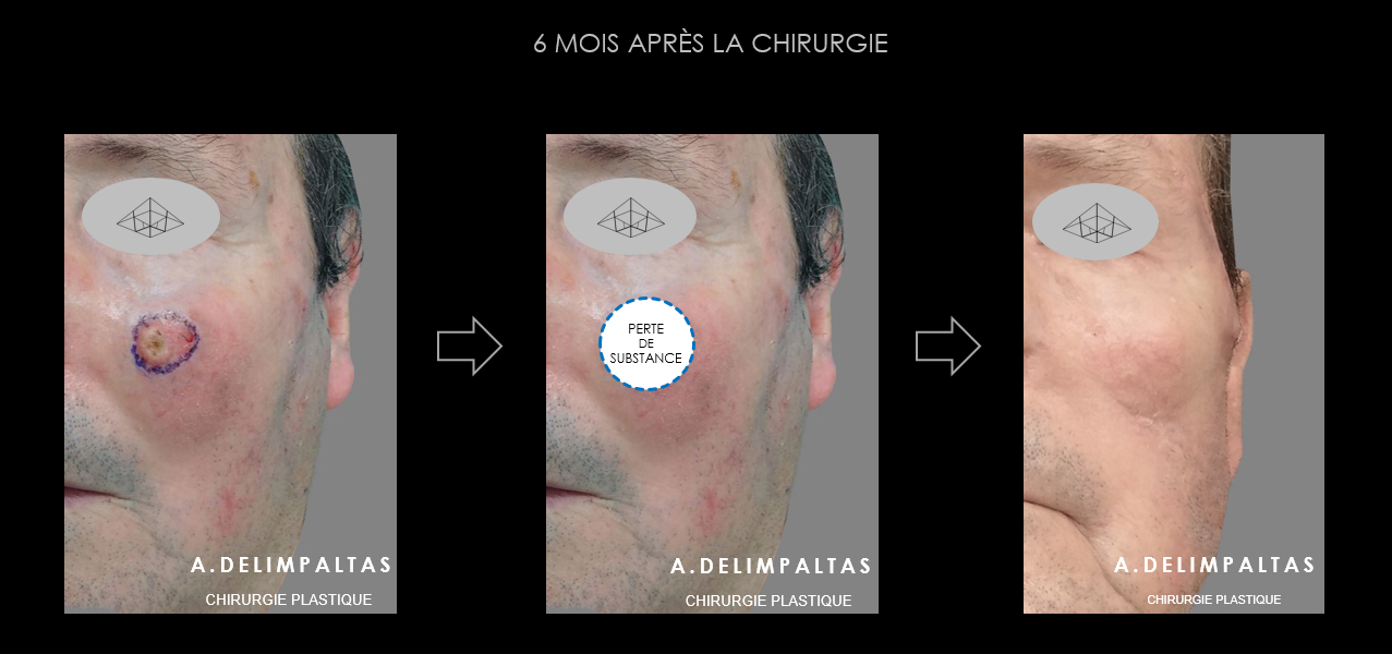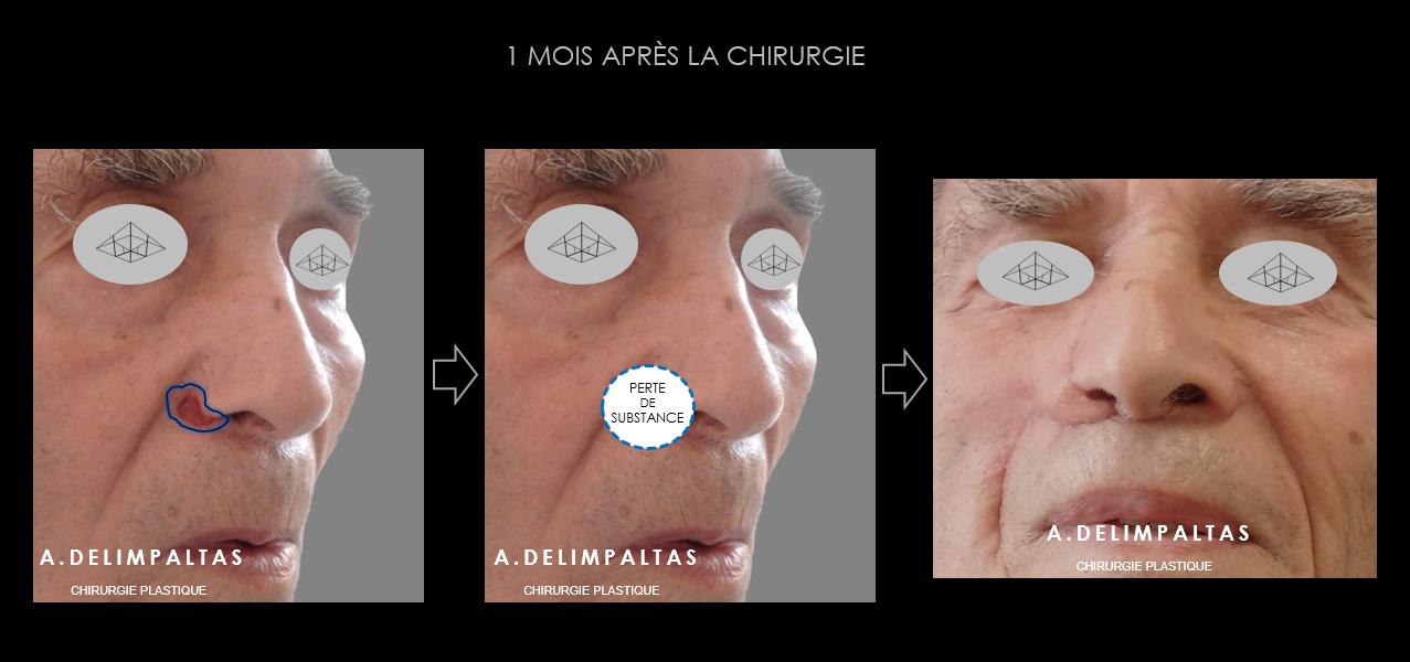 Traitement chirurgical dun homme atteint dun cancer de la peau de type CSC sur laile du nez, sur la joue et sur la lèvre supérieure du côté droit du visage